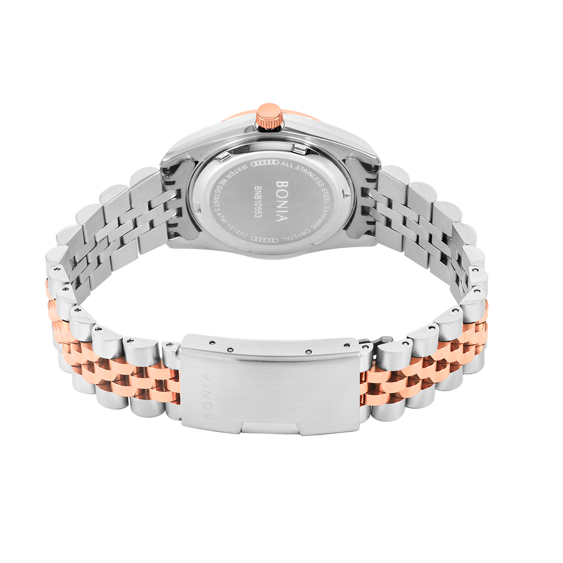 ケース:ステンレス/ツートンローズゴールドIP バンド:ステンレス/ツートンローズゴールドIP 風防:サファイアガラス |