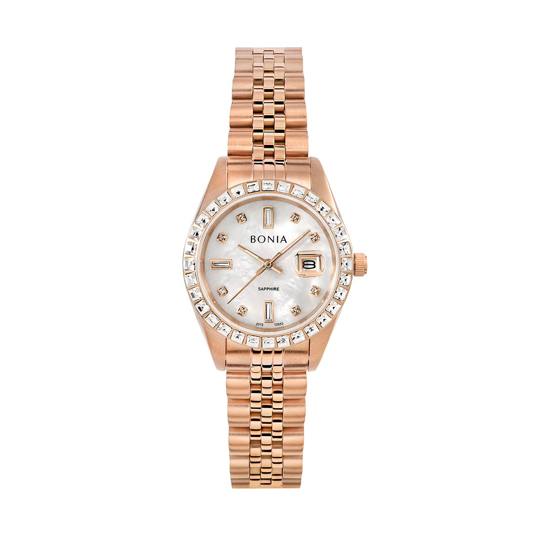 ケース:ステンレス/ローズゴールドIP バンド:ステンレス/ローズゴールドIP 風防:サファイアガラス |