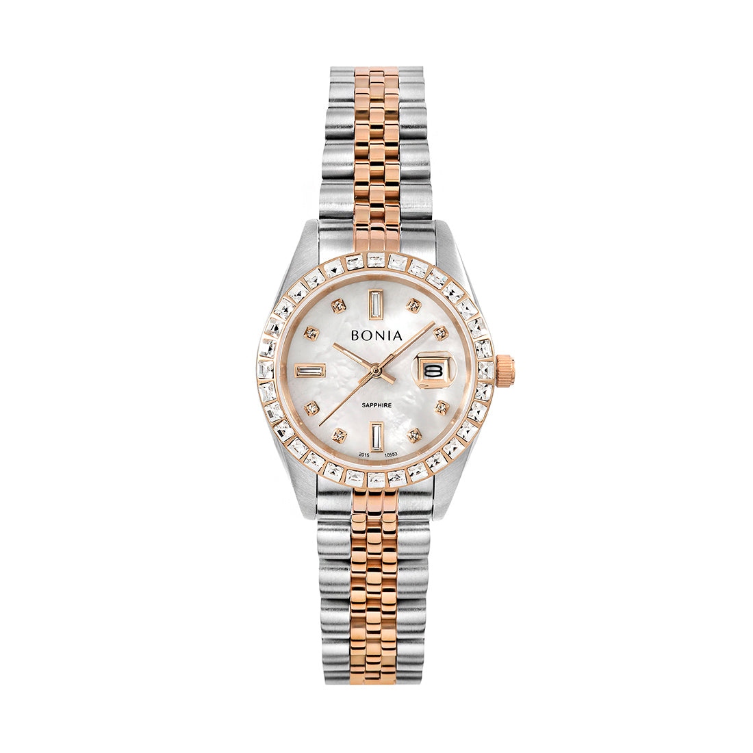 ケース:ステンレス/ツートンローズゴールドIP バンド:ステンレス/ツートンローズゴールドIP 風防:サファイアガラス |