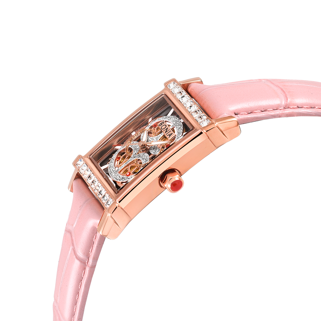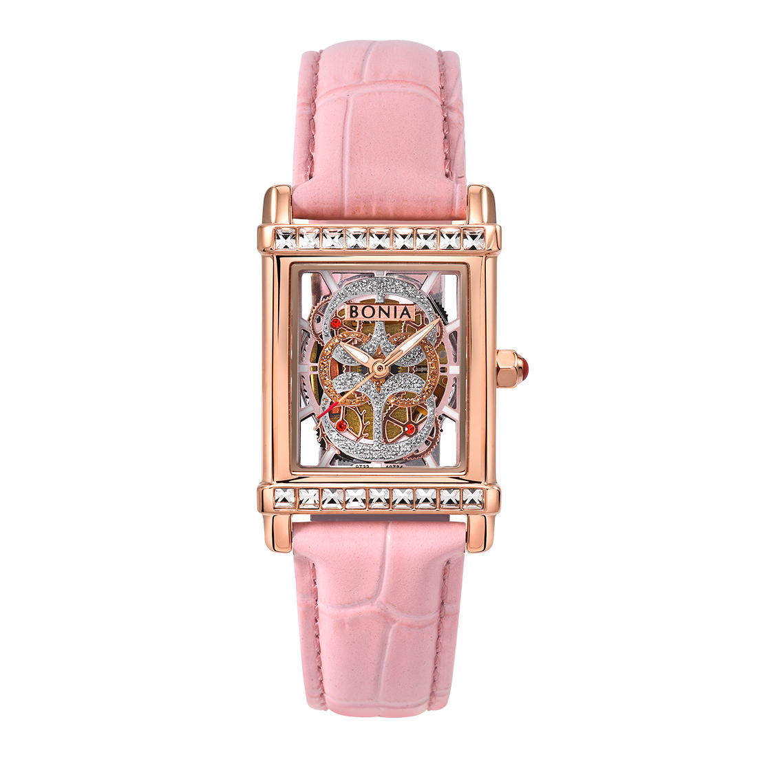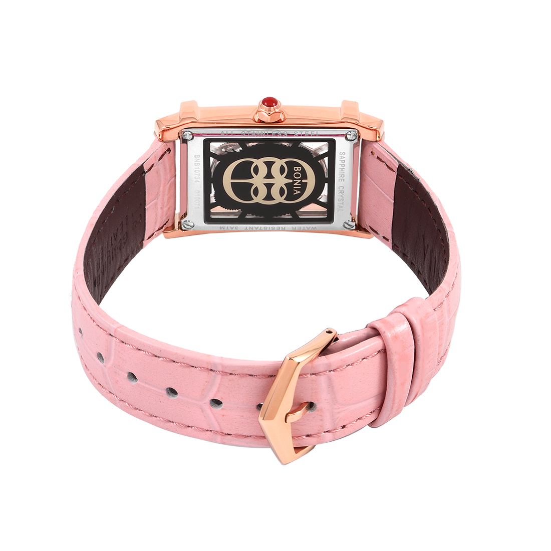 ケース:ステンレス/ローズゴールドIP バンド:革/ピンク 風防:サファイアガラス |