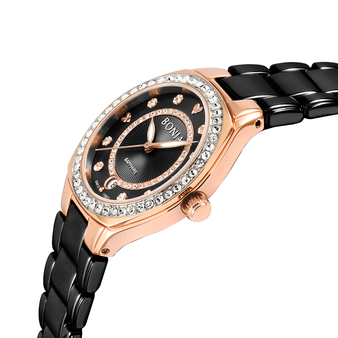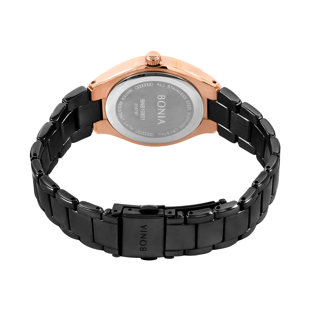 ケース:ステンレス/ローズゴールドIP バンド:ステンレス/ブラックIP 風防:サファイアガラス |