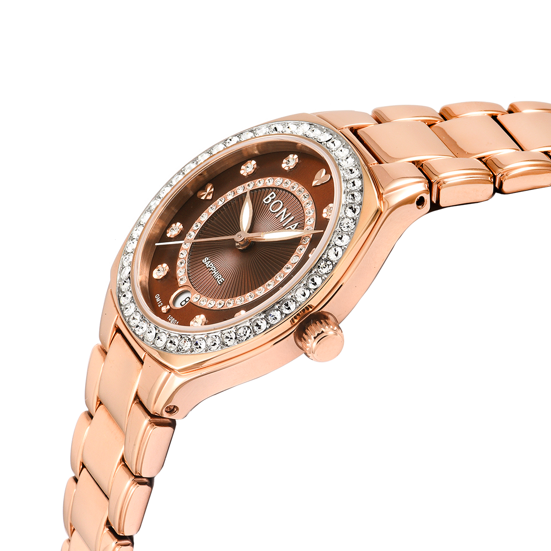 ケース:ステンレス/ローズゴールドIP バンド:ステンレス/ローズゴールドIP 風防:サファイアガラス |