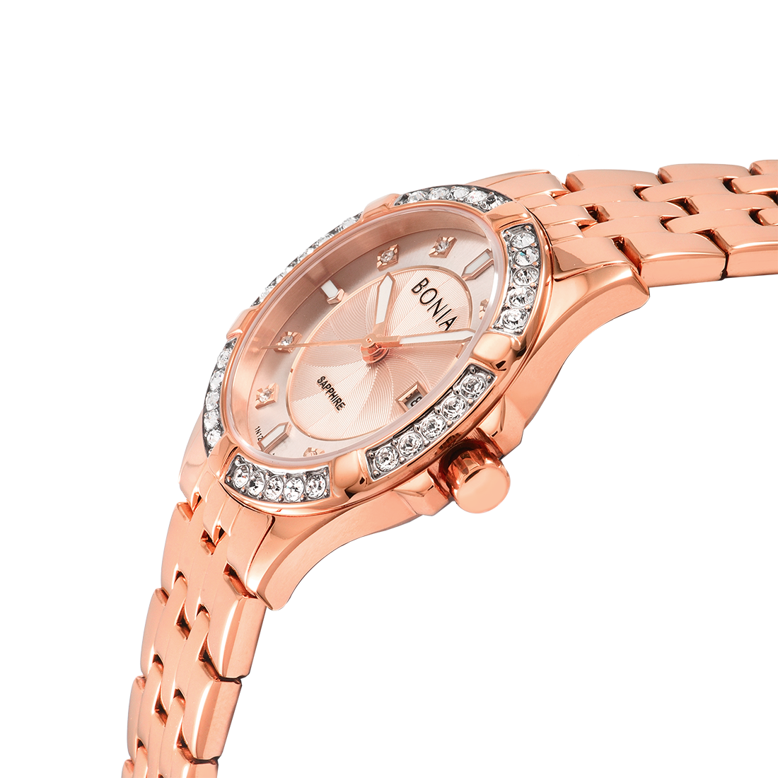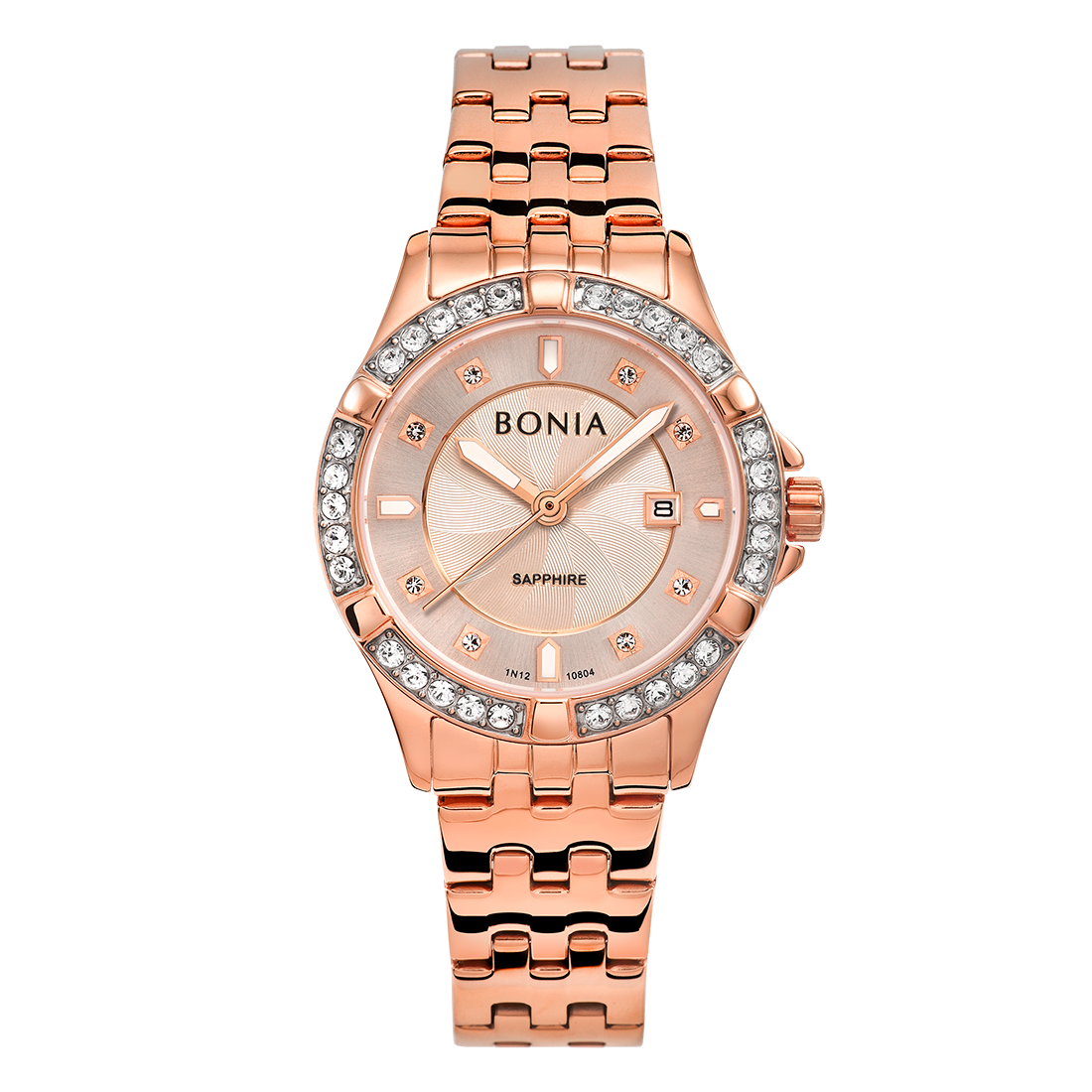 ケース:ステンレス/ローズゴールドIP バンド:ステンレス/ローズゴールドIP 風防:サファイアガラス |