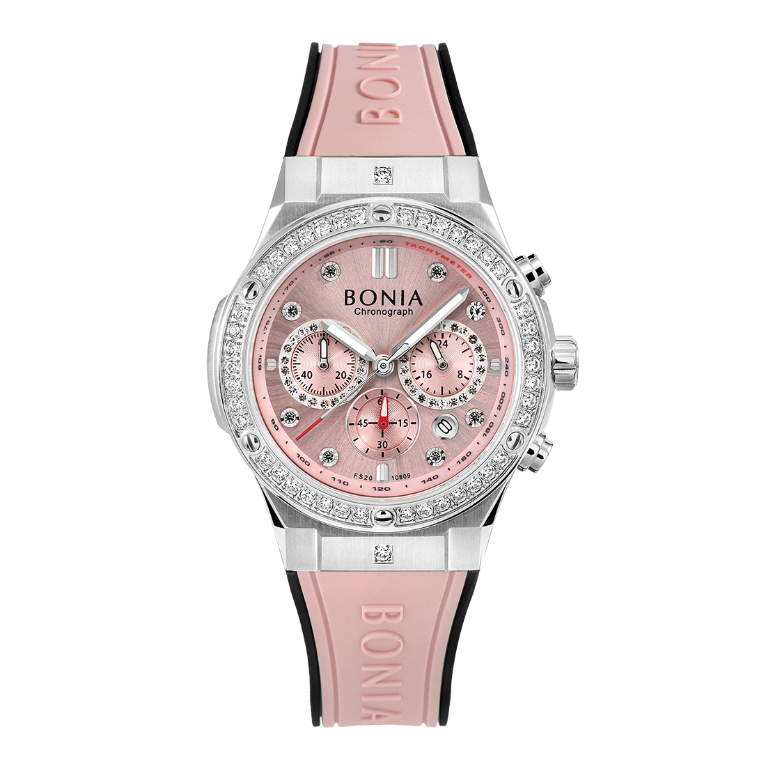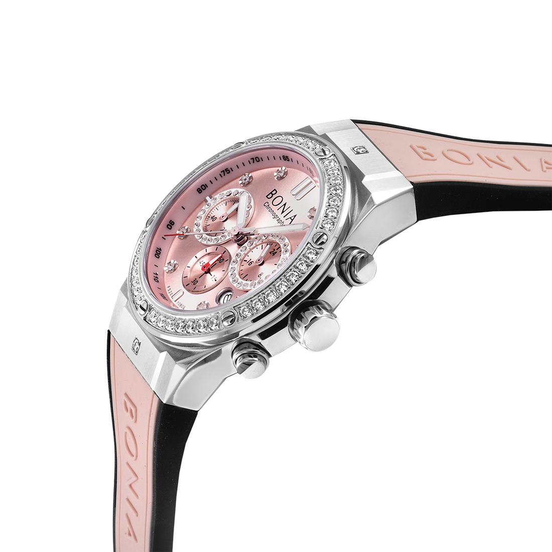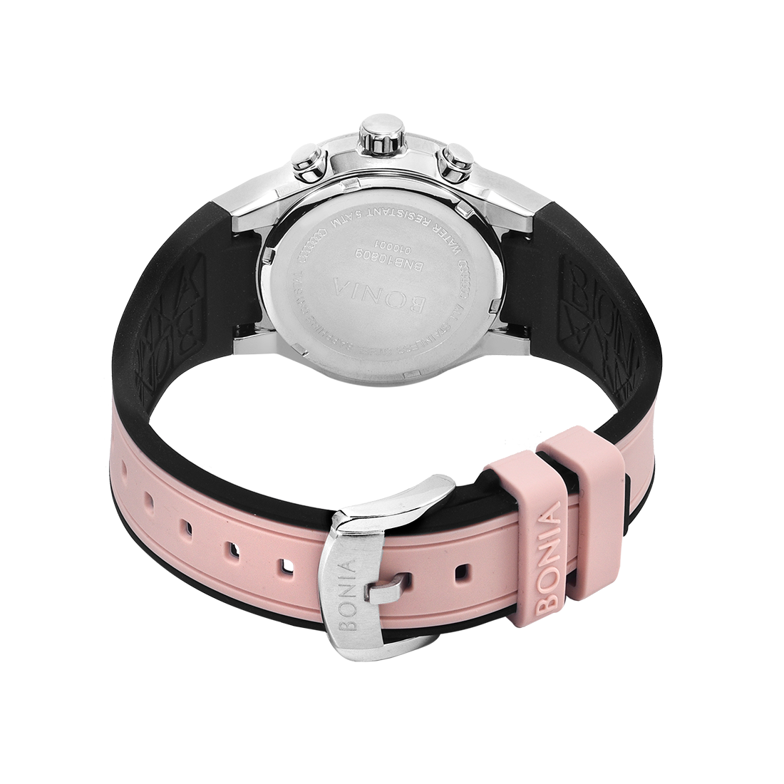 ケース:ステンレス バンド:シリコン/ブラック+ピンク 風防:サファイアガラス |