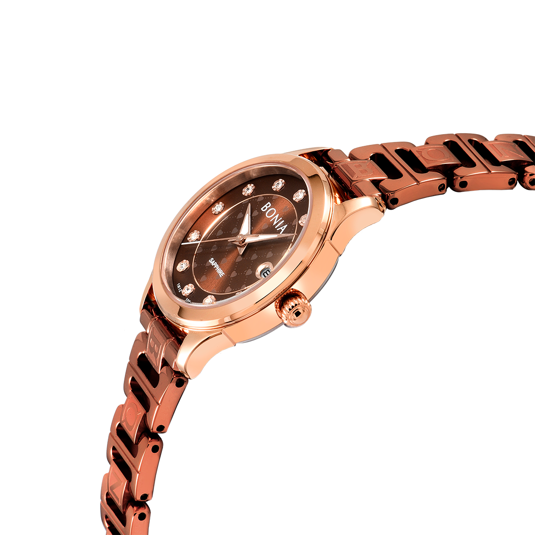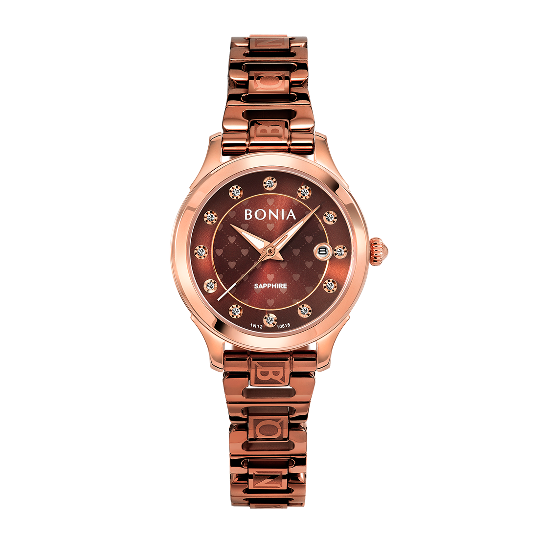 ケース:ステンレス/ローズゴールドIP バンド:ステンレス/ブラウンIP 風防:サファイアガラス |