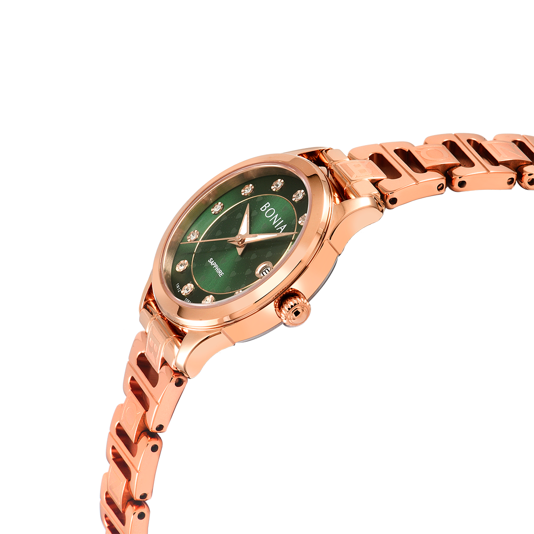 ケース:ステンレス/ローズゴールドIP バンド:ステンレス/ローズゴールドIP 風防:サファイアガラス |