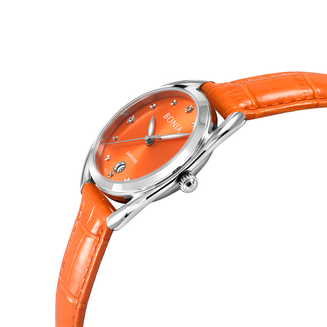 ケース:ステンレス バンド:革/オレンジ 風防:サファイアガラス |