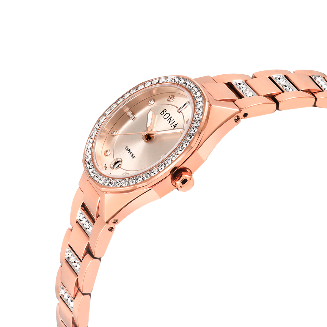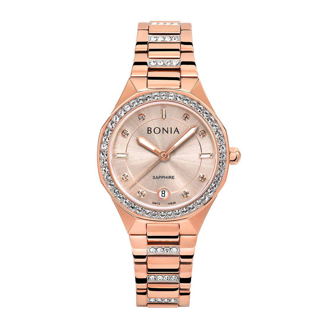 ケース:ステンレス/ローズゴールドIP バンド:ステンレス/ローズゴールドIP 風防:サファイアガラス |