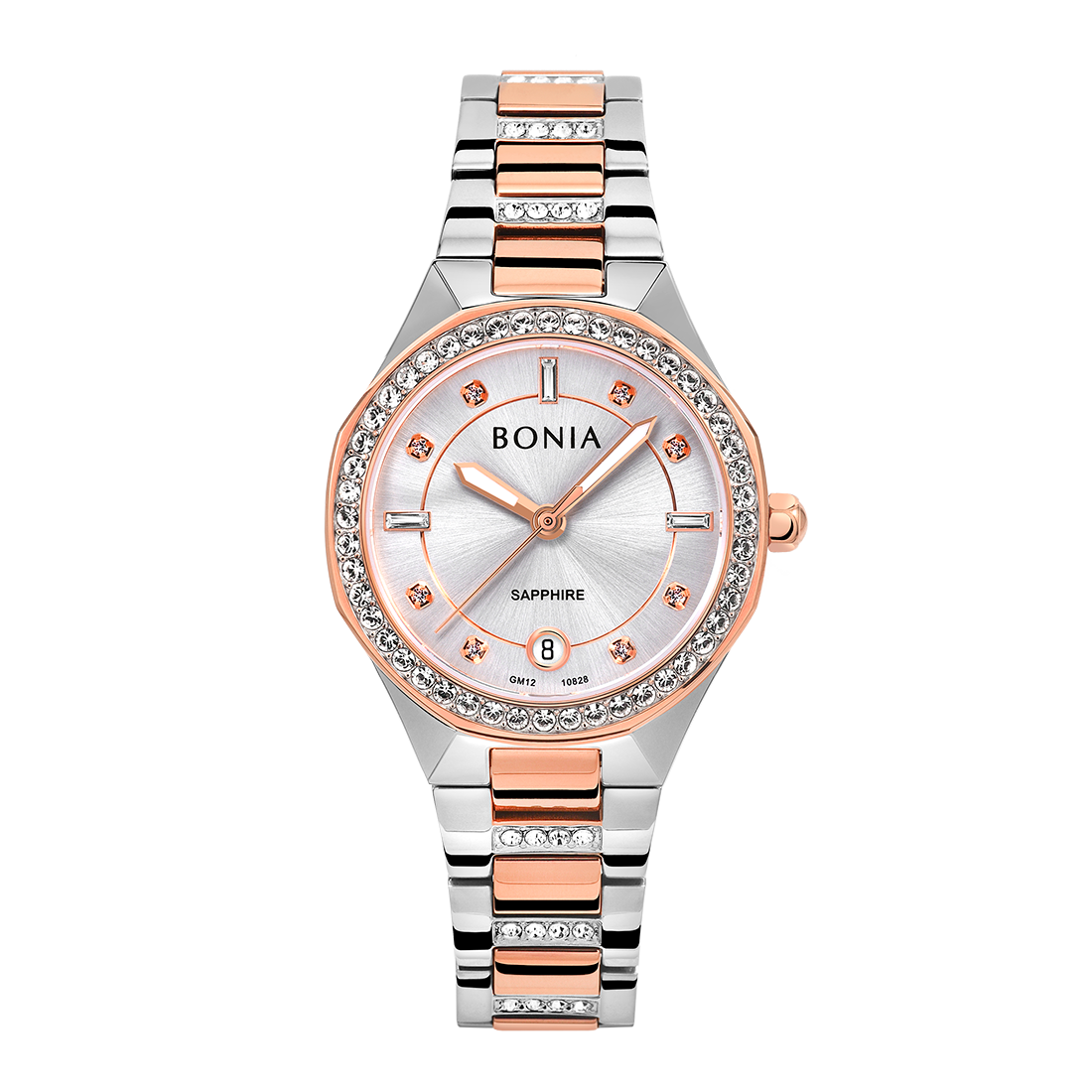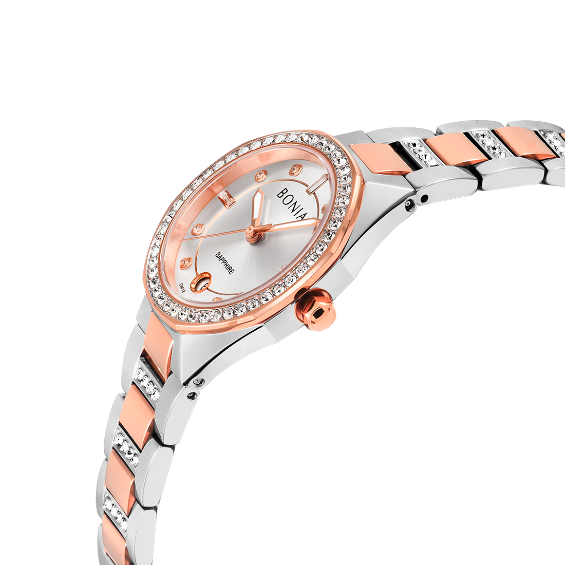 ケース:ステンレス/ツートンローズゴールドIP バンド:ステンレス/ツートンローズゴールドIP 風防:サファイアガラス |