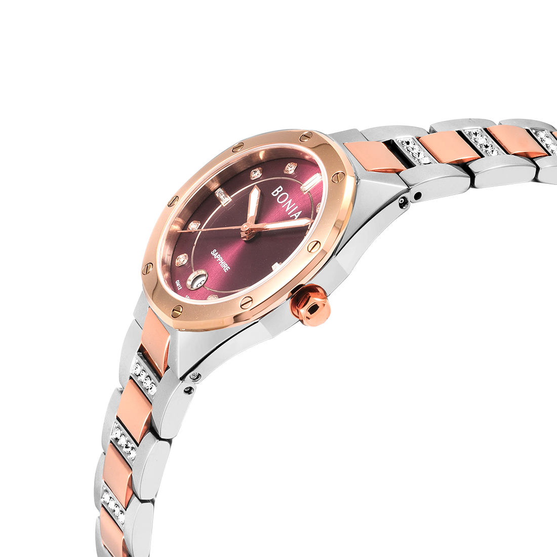 ケース:ステンレス/ツートンローズゴールドIP バンド:ステンレス/ツートンローズゴールドIP 風防:サファイアガラス |