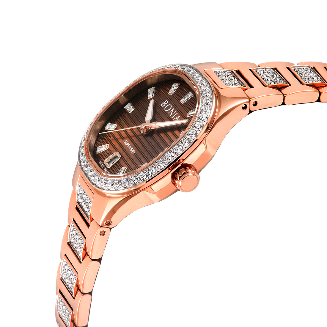 ケース:ステンレス/ローズゴールドIP バンド:ステンレス/ローズゴールドIP 風防:サファイアガラス |