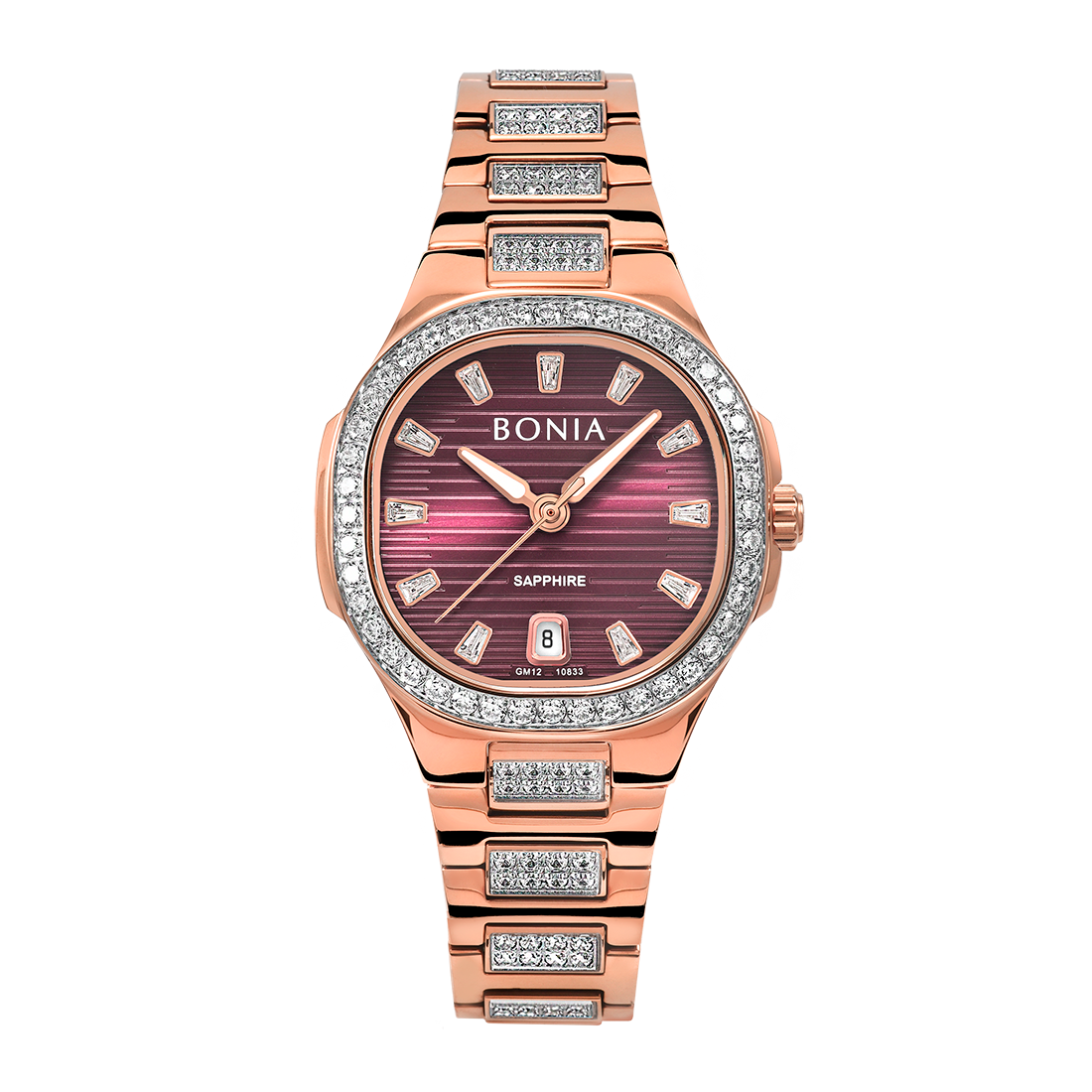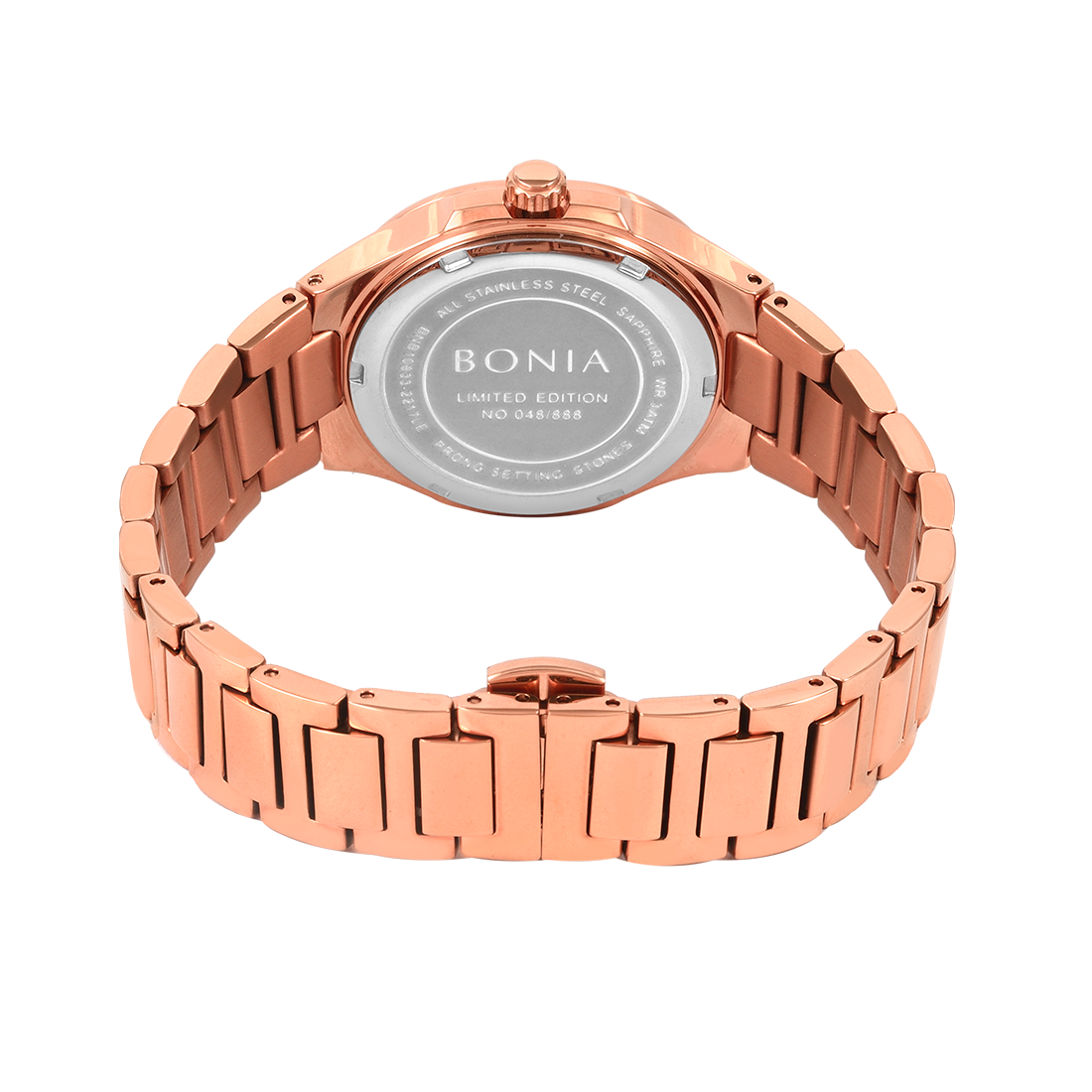 ケース:ステンレス/ローズゴールドIP バンド:ステンレス/ローズゴールドIP 風防:サファイアガラス |