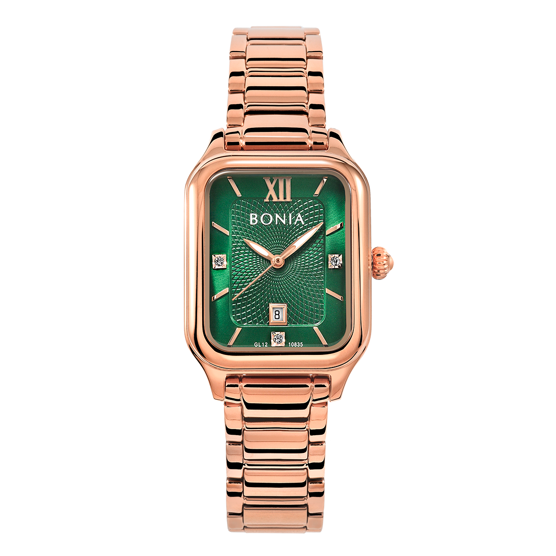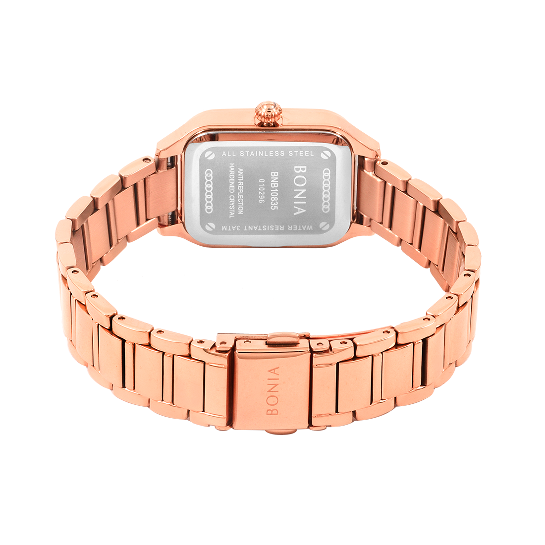 ケース:ステンレス/ローズゴールドIP バンド:ステンレス/ローズゴールドIP 風防:ガラス |